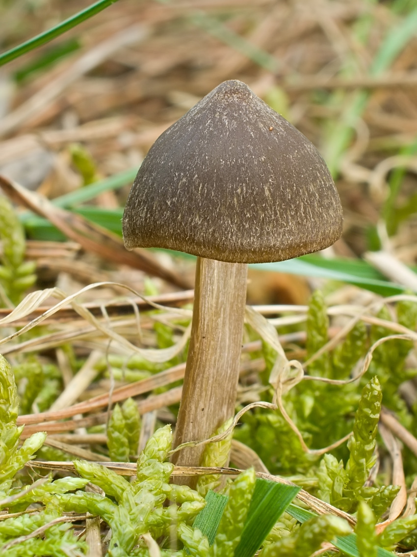 Entoloma vernum, 03.04.2021, Dolnomoravský úval. Mladá plodnice s kloboukem cca 1,5 cm v průměru. Lokalita jako výše.