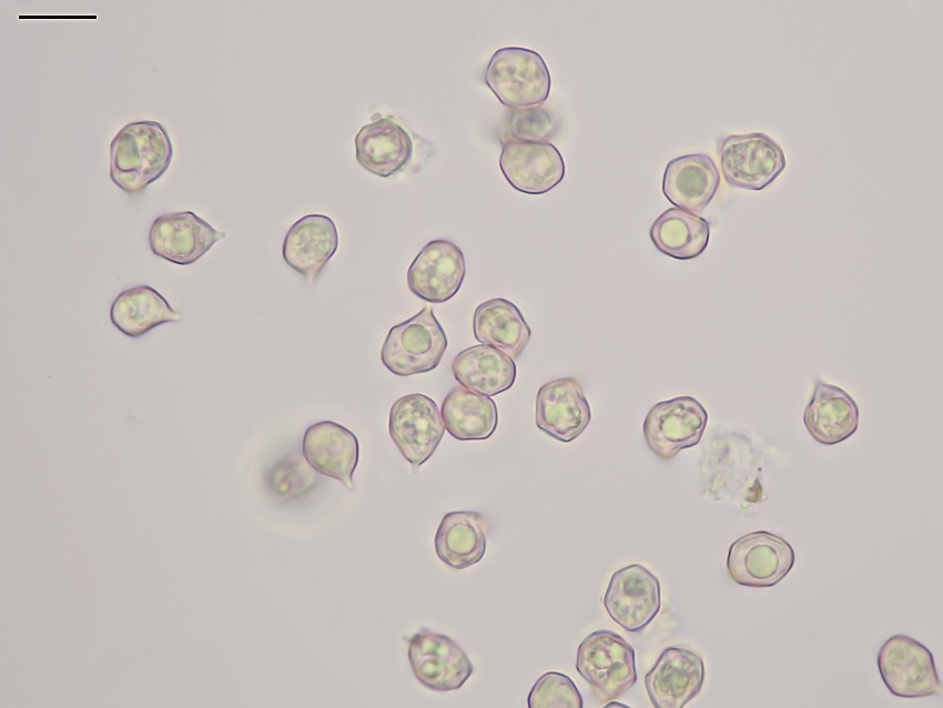 Entoloma vernum, 03.04.2021, Dolnomoravský úval. 5-7 hranné výtrusy. Zvětšení 1000× (imerze), voda, délka úsečky 10 µm.