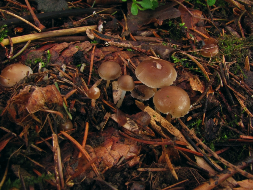 Strobilurus esculentus, 19.03.2011, Dolnomoravský úval. Městská zástavba, pod staršími Picea pungens.