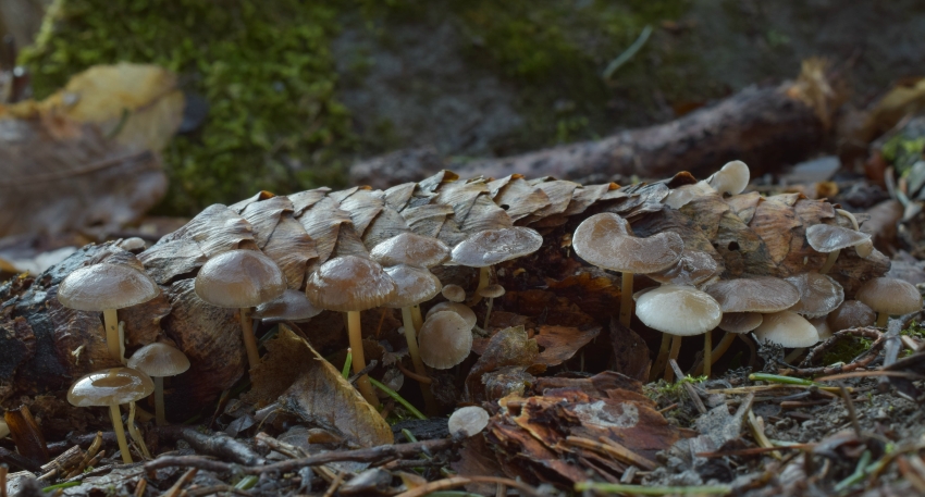 Strobilurus esculentus, 17.03.2019, CHKO Bílé Karpaty. Smíšený les.